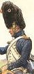 During long marches the scarlet flammes on their fur caps have disappeared beneath black waxed and varnished covers atop the caps, and their sabretaches were covered with a black, waxed case without ornament. The trumpeters' white fur caps were left in regimental depot, black fur caps "always being worn on campaign." (- L. Rousselot) In 1815 the Chasseurs' uniforms, once so brilliant, were varied. A few left for Belgium in dark green undress coats like the Emperor's with scarlet collars and orange shoulder knots and aiguillettes, red waistcoats - either braided in orange or plain - green breeches with Hungarian boots or overalls, and colpacks with red and green cords and plumes. About 500 wore dolmans and pelisses with riding trousers and boots. In 1804-15 in good weather the Guard Chasseurs of the picket were dressed in their habits of their service uniforms, the long ornamented tails of which fall down on each side of their saddles. Their fur caps would display their corded and tasselled flammes and red-green plumes.