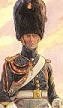 The Guard dragoons wore dark green coats with white lapels, aiguilettes, and fine helmets with long black horsehair. The fur band around the helmet's